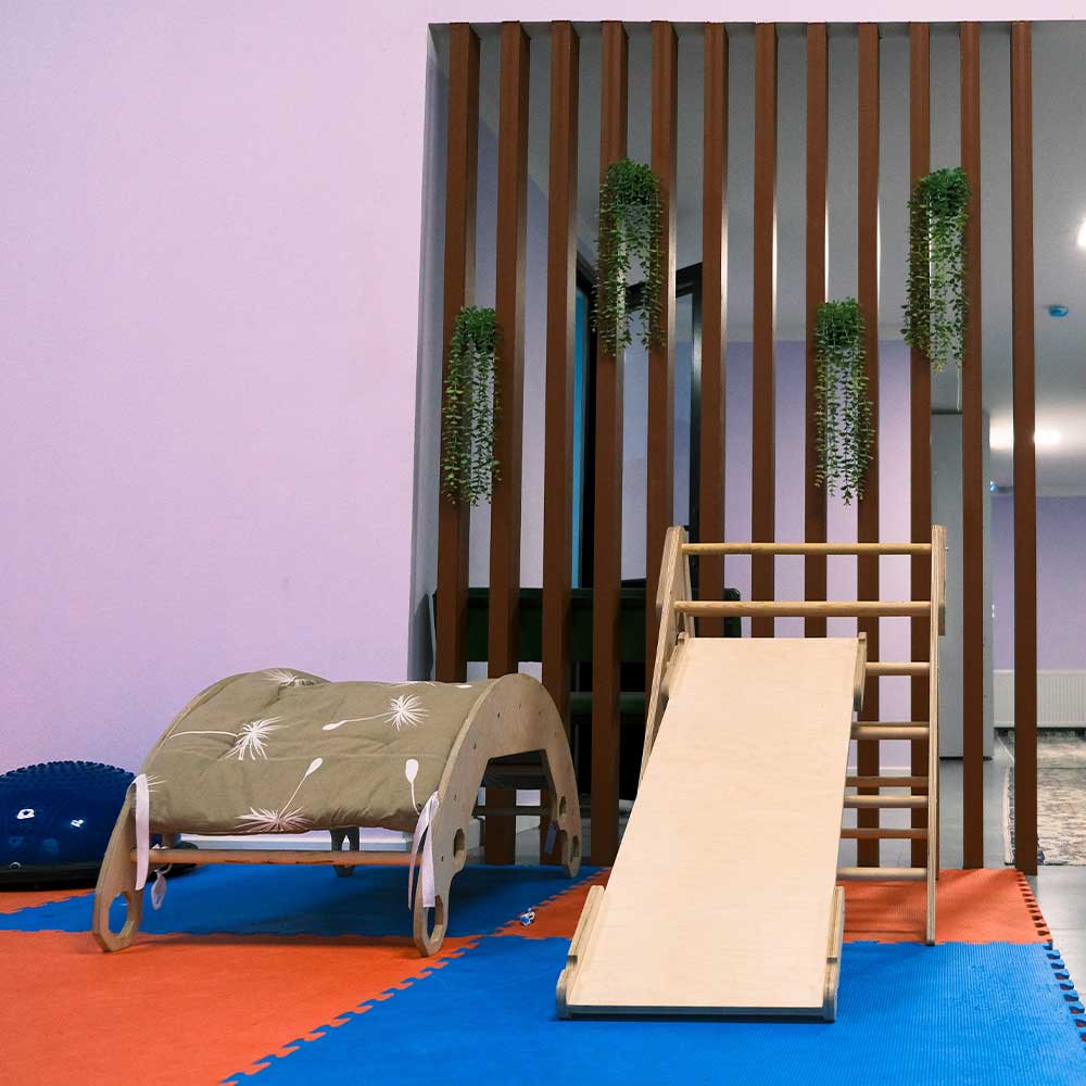 Наш центр оборудован всем необходимым для эффективных занятий по АФК и сенсорной интеграции. В нашем кабинете есть специализированное оборудование, которое помогает детям развивать свои физические и сенсорные навыки в комфортных и безопасных условиях.
